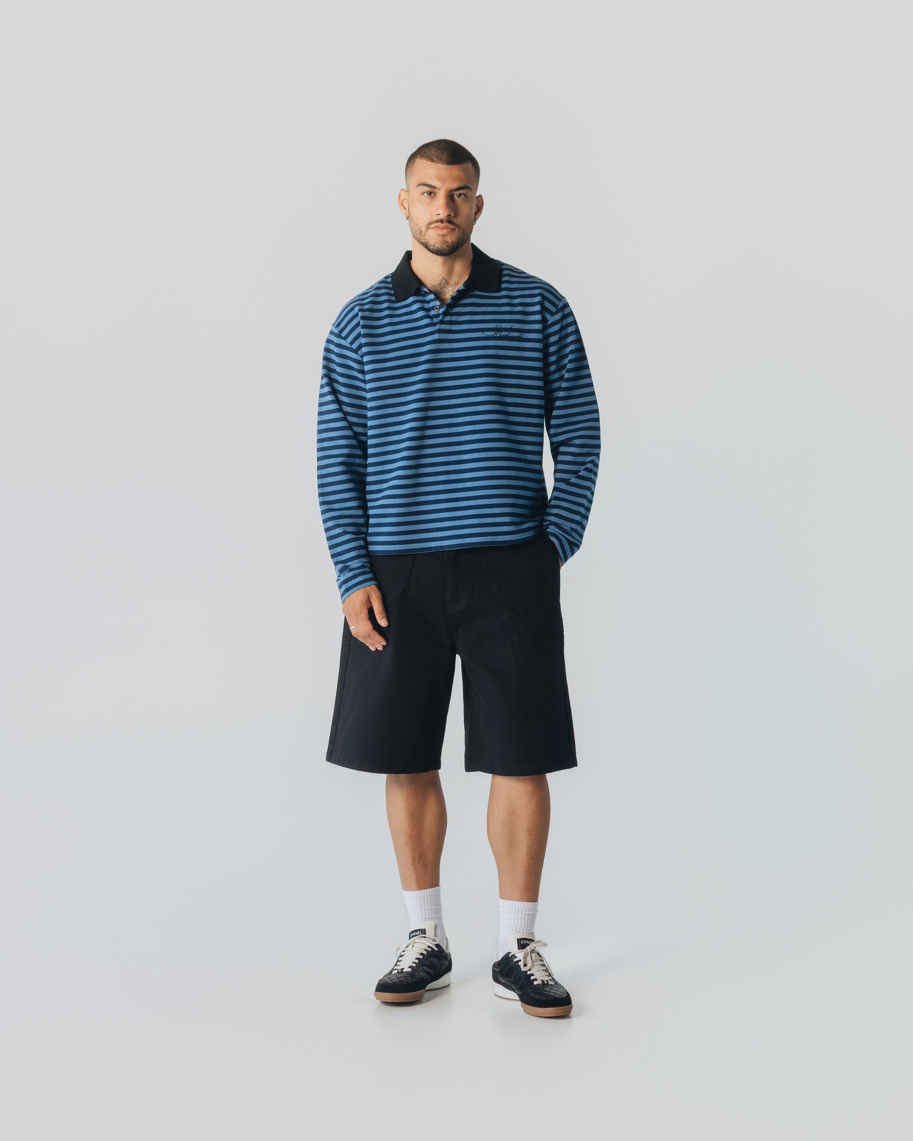 True-to-size fit. We recommend your standard size. Model is 6’1”, 185lbs wearing a Large/34”.