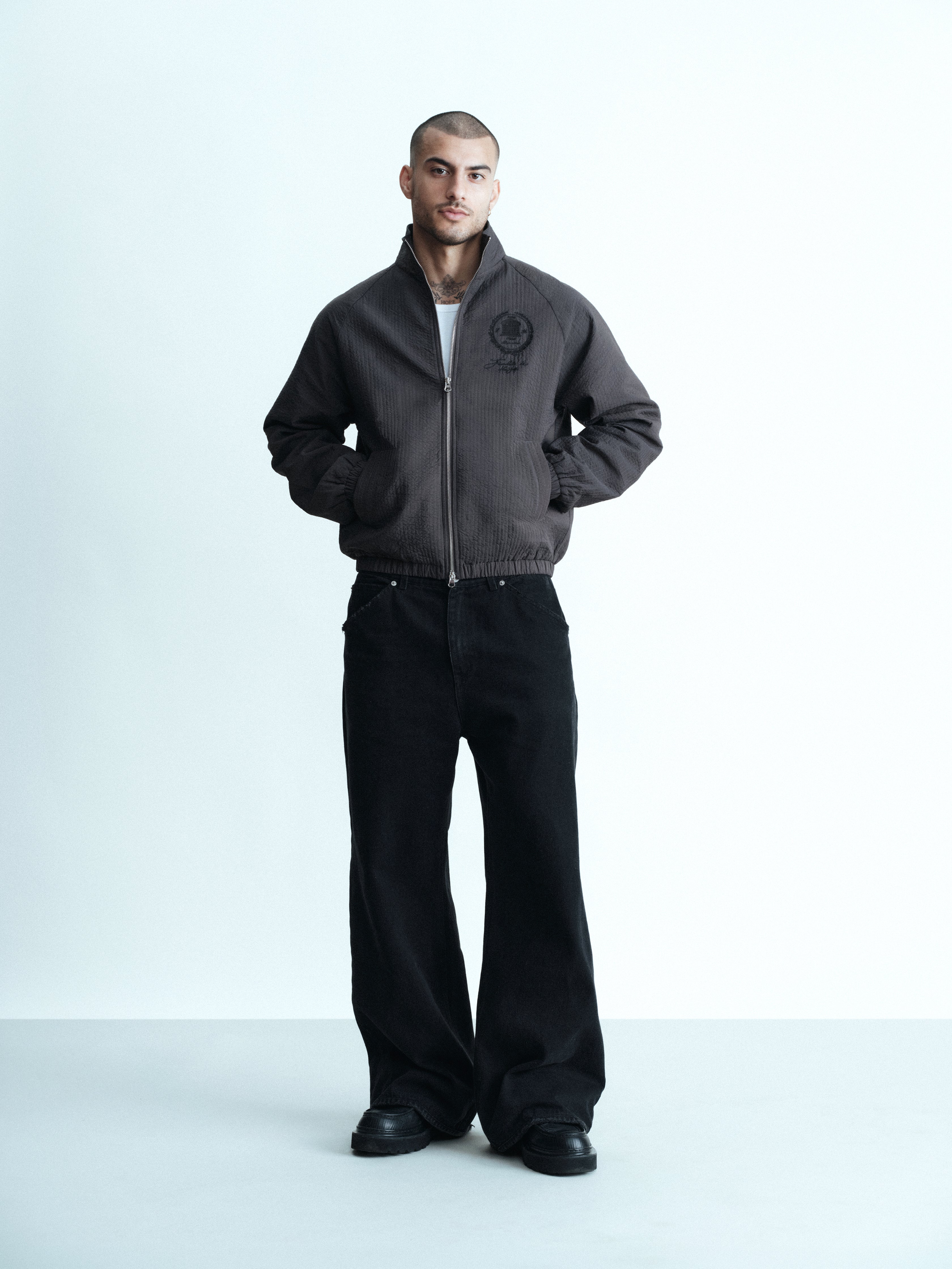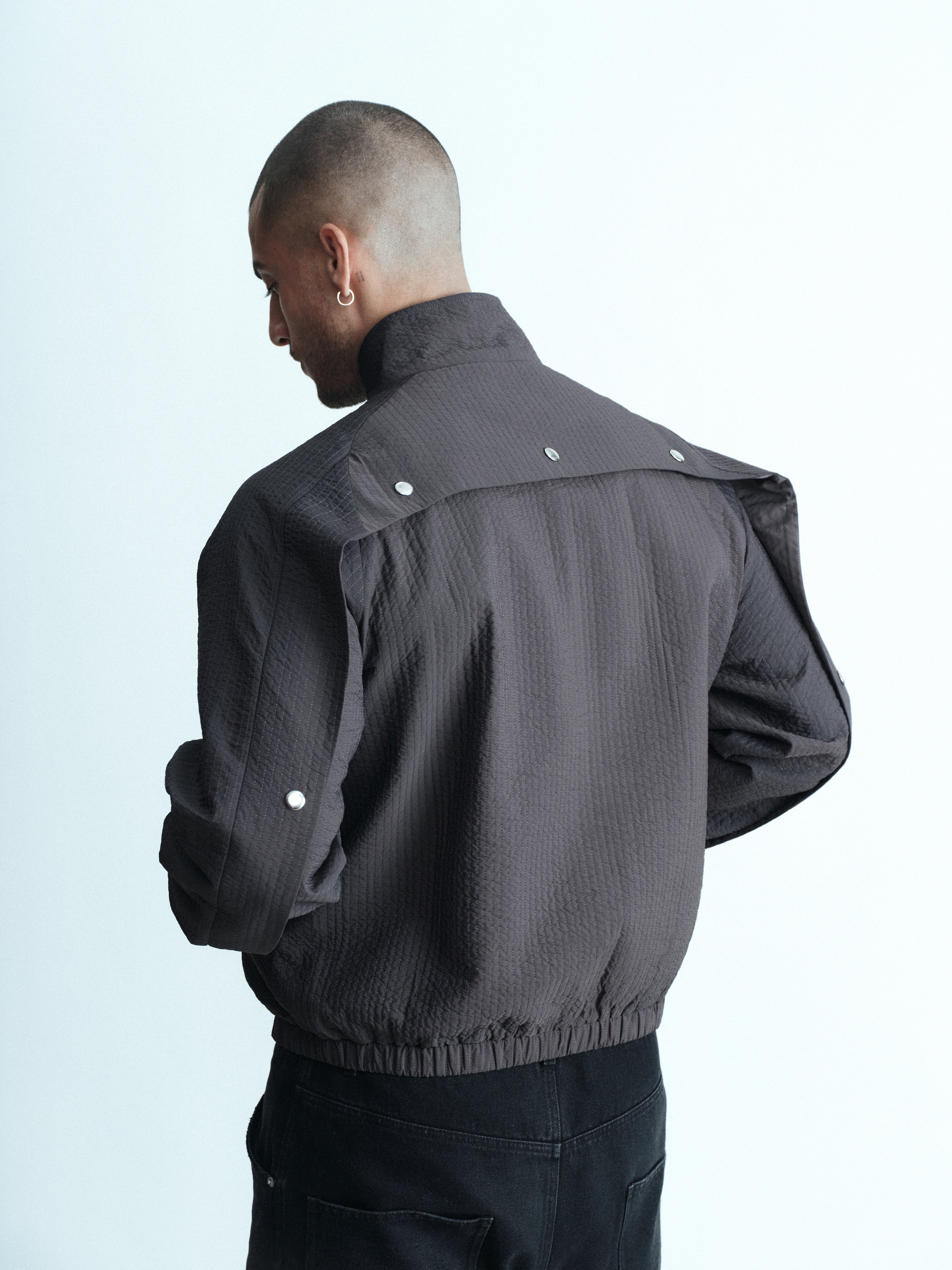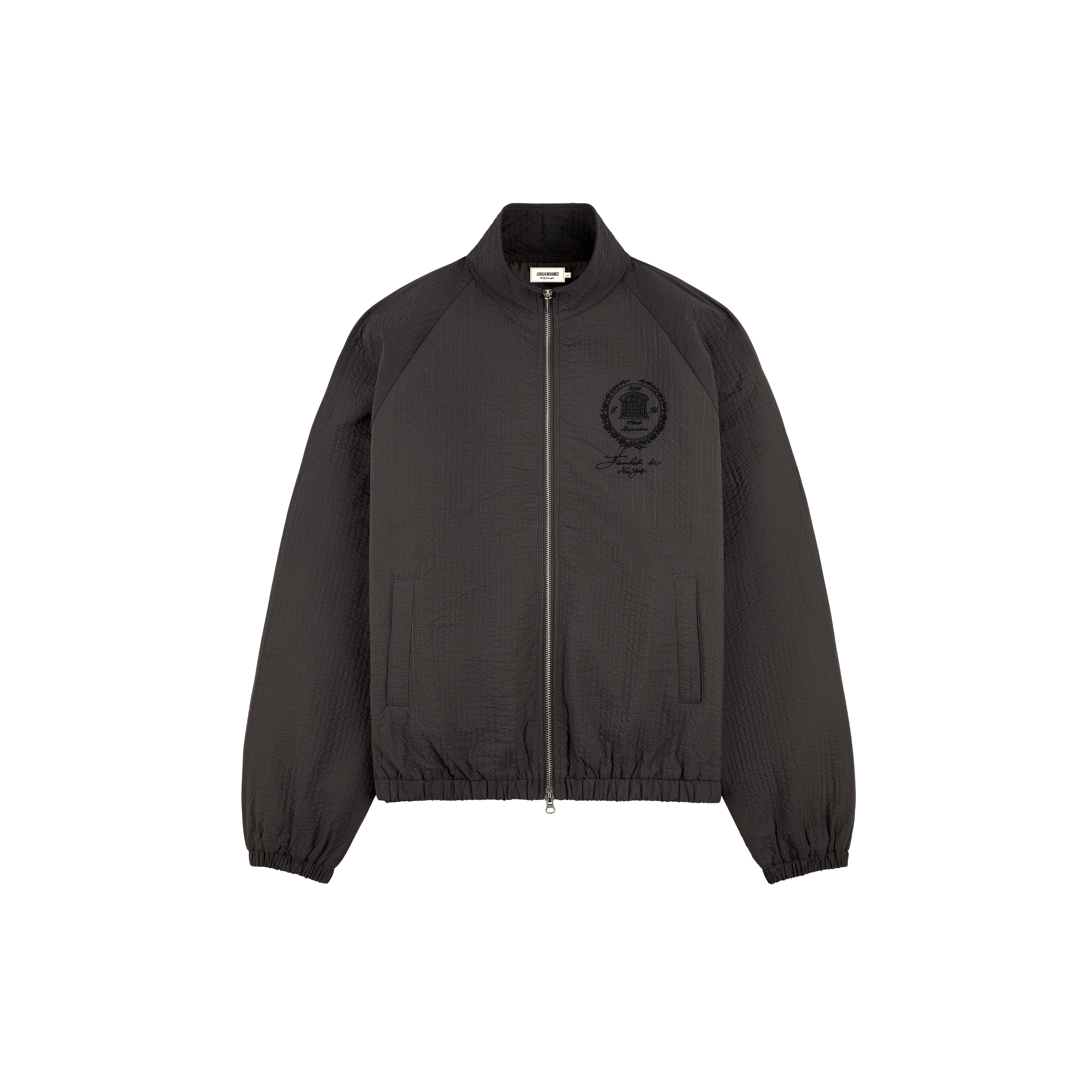 A lightweight quilted jacket constructed from 100% nylon with light padding, finished with a raglan sleeve design and subtle technical detailing. Features an embroidery chest logo, double-zip closure, elasticated cuffs and hem and a functional back vent with silver stud closures for added movement.